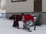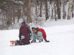 ≪隊長と一緒に大名沢へ≫ スクールが終わってから、隊長と一緒に大名沢へ登りました。 快晴の日には、浅間山の横に遠く富士山が望めるんですよ・・・ |