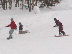 ≪スクール風景≫ インターアルペン表万座スノーボードスクールに入校。 初心にかえって、基礎技術からしっかり学びました・・・ |