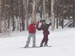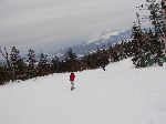 ≪大名沢を滑る≫ 絶景の中、気持良く滑走する二人のスカウト! 前日分もまとめて楽しんだようで、満足でした。 |