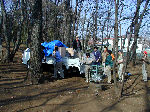 【 現地到着 】 まずは、本部の荷物をトラックからおろす手伝いをします。 |