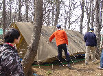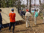 【 テント点検 】 設営直後に実施された“テント点検”では、各団リーダーのからの厳し い指摘を受けて、それぞれに修正・工夫をしていました・・・・・・! |