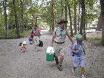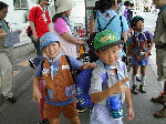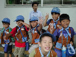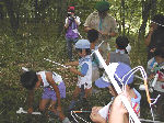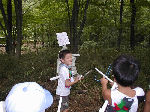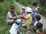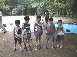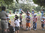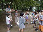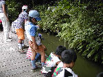 | 【 !!(;`O´)o/ ̄ ̄ ̄B~ >゚))))彡釣り 】 川に行って、葉っぱの船を作りました。作り方はボーイ隊の大谷隊長が・・・! いよいよ始まる『ザリガニ釣り』でも、なぜかお母さんの方が燃えてないかい? |