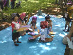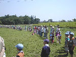 | 【 開会セレモニー! 】 全員ならんだ開会セレモニー・・・首領が登場し、今日の任務を 説明してくれました。でも、なんだか飽きてきちゃった子も・・ |