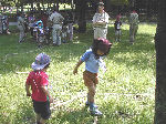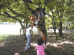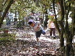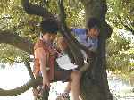 | 【 忍者の休憩は木の上で? 】 疲れてきたら、木に登って休憩します・・・・・ でも、隠れて休憩というよりも、楽しい木登り? |