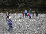 枝状に結んだロープで綱引きだ・・・誰が一番力もち?