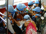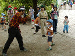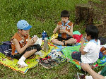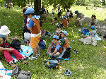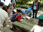 | 【 待ちに待ったお弁当 】 五つのチェックポイントを全部クリヤーして、ようやくお弁当にありつけました。 『いただきま〜す!』この時間が一番幸せそうなスカウトもたくさんいたりして! |