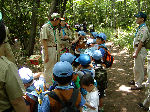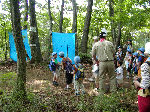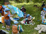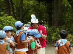 | 【 第4・5チェックポイント 】 第4チェックポイントは『真実の道』・・・本当のトトロはどっちかな? 第5チェックポイントでは、林の中からトトロカードを探しての『ビンゴ ゲーム』頑張ったスカウト全員にチョコパン・クリームパンの賞品が! |