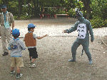 | 【 第2チェックポイント 】 空飛ぶトトロをめがけてボールを投げます。みんな、いくつ当ったかな? |