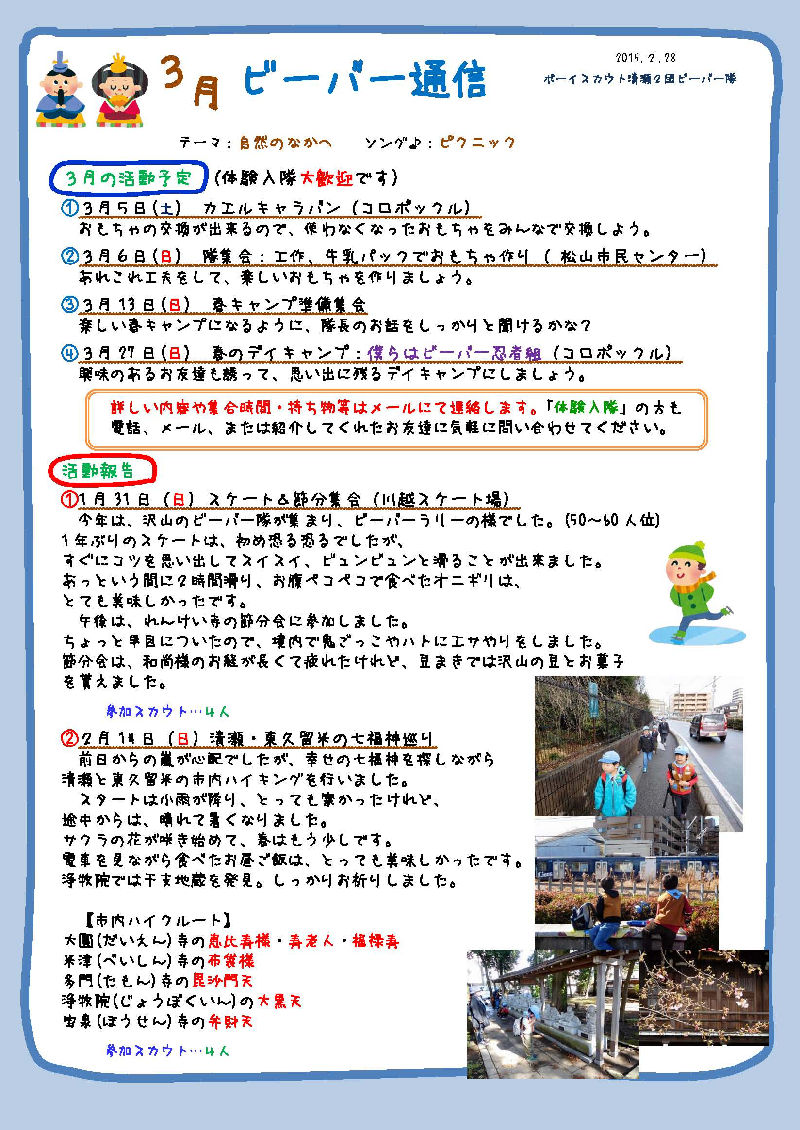 ビーバー通信 2016年3月号