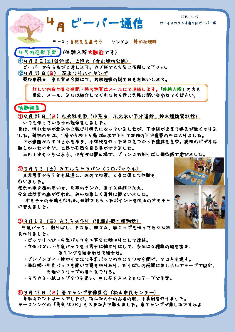 ビーバー通信 2016年4月号