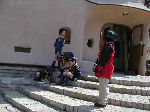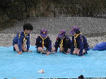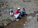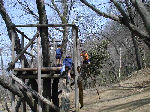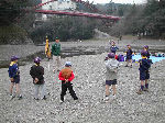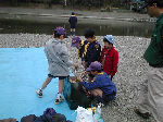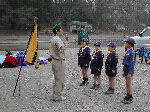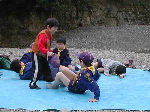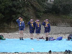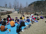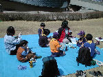【 昼食!! 】 わ〜い、ようやくお弁当の時間だ・・・! みんないっしょに「いただきま〜す・・」 ビーバー隊は、ここでお別れ、帰ります! |