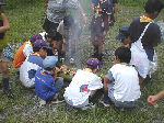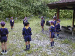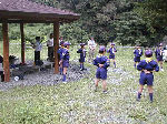 【 出発式&開村式 】 団舎前での出発式、車に揺られて到着した白山温泉・・ちょっと疲れちゃったかな? そんなことはありません! スカウト達はみんな元気に開村式・・・いよいよ始まり! |