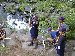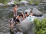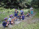 【 川遊び 】 曇りで水も冷たかったけど、川遊びははずせません!子供は元気じゃ! 安全確保の藤井副長、水が冷たくて辛かったでしょ?ご苦労様でした! |