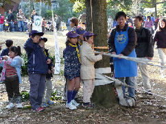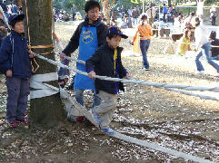 このブースはオラウータンの体験ができるコーナーです。 猿になりきってるし・・・・・