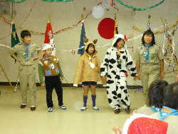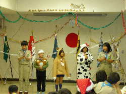ここからは、スタンツや全員参加のゲームで大盛り上がりです! 元気いっぱい!ビーバー隊のスタンツ!