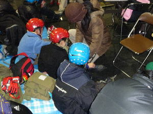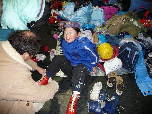 午前10:00 いよいよスケート訓練の始まりです! もちろんスケート靴は自分で履きます.。 んっ!? 大人が手伝ってる!?