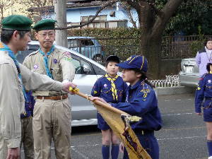 新たなスカウトを迎え入れての出発式です。