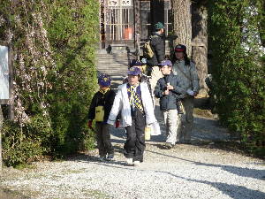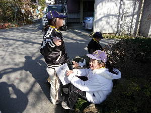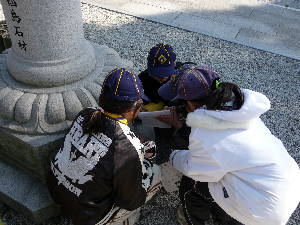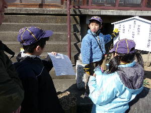 ウォークラリー 組ごとに、コマ地図を見ながらチェックポイントを探し、 チェックポイントでのクイズなどの課題にチャレンジするウォークラリーをします。 難しい課題も多くありましたが、 各組、全員で協力して、すべての課題をクリアーすることができました〜!