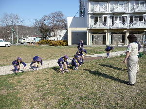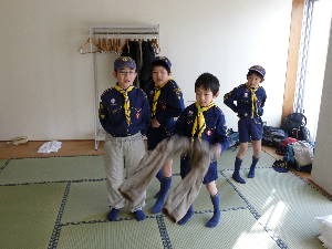 体操と宿泊室の整理整頓でキャンプ2日目は始まります。