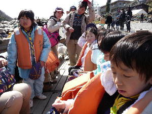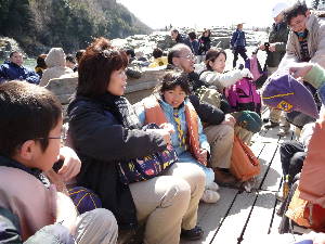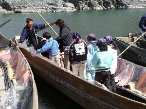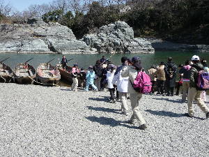 クラフトの後は、いよいよライン下りです。 絶景の長瀞の奇岩の間をすり抜けて行くスリルは最高!