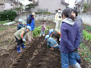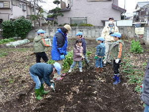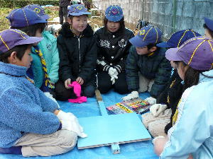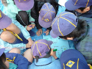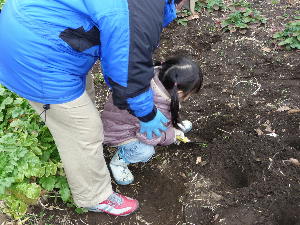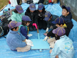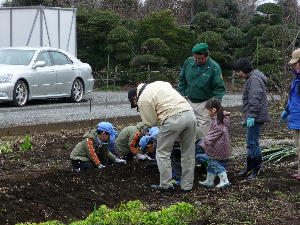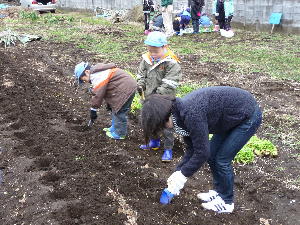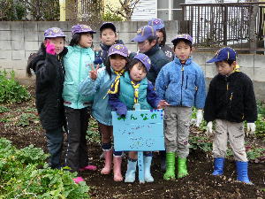 ビーバー隊とカブ隊でじゃがいもの種芋を植えました。