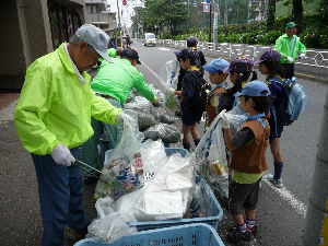 松山市民センターで、拾い集めたゴミの分別をします。
