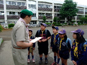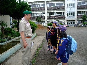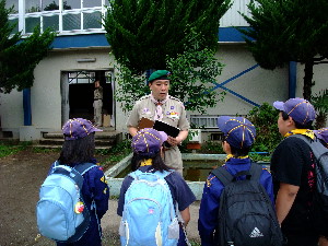 清瀬第六小学校に到着!と、思いきや、 入り口で、謎の文字についての質問がありました。 「文字を組み合わせると・・・?」 答えは “かっぱのクゥ!” 無事に清瀬第六小学校に入ることができました!