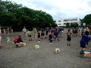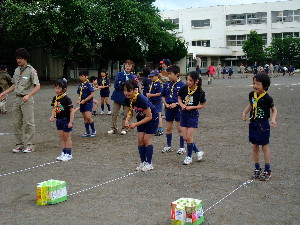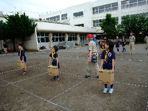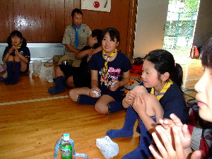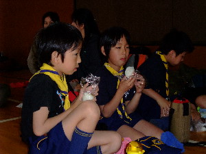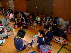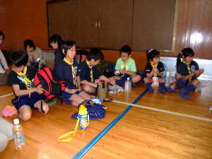 体育館で食事です。