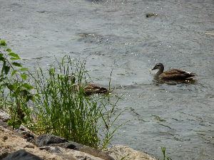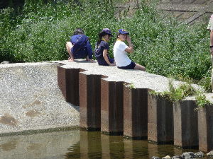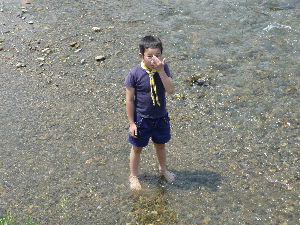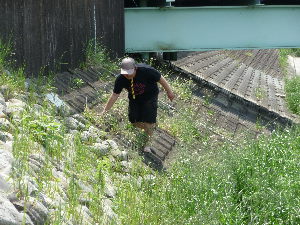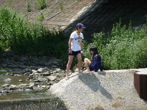 お腹がすいたので近くの河原で昼食です。 暑いので橋の下で、いただきま〜す!