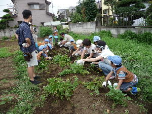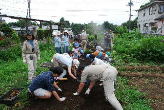 農園に到着後、作業準備ををすれば、いよいよいも掘りです。