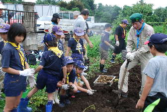 3月10日にビーバー隊とカブ隊で植えた、