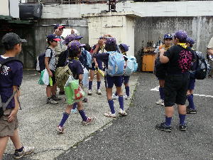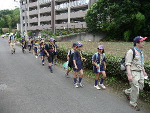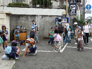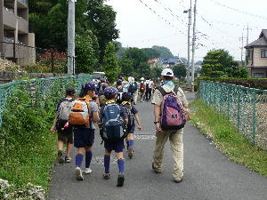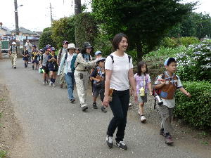 これから収穫祭をする金山緑地公園まで歩いて行きます。