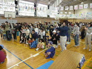 今日の天気は雨・・・ 体育館で行うことになりました。 AM10:00 体育館でいよいよ開会式です。