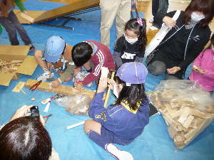 開会式のあとは、ゲームや工作を楽しみます。