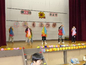 昼食のあとは舞台の催し物を見学します。 マジックは踊りに大歓声! 楽しいこどもまつりも閉会の時間です。 楽しい1日に感謝!