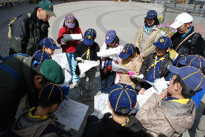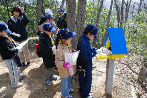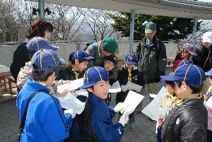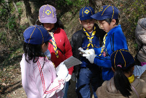 星座スタンプラリー 地図を見ながら山の中に設置された星座のスタンプを探します。 風が強い中、ガンバったぞ〜!