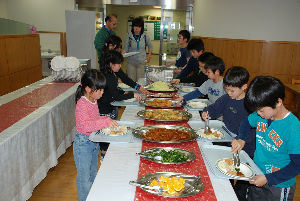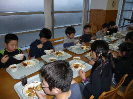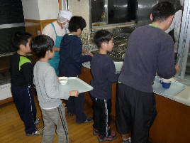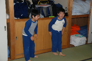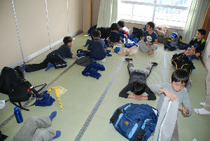 スタンプラリーのあとは、宿泊室で休憩します。 夕食の時間で〜す! いただきます!