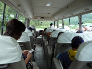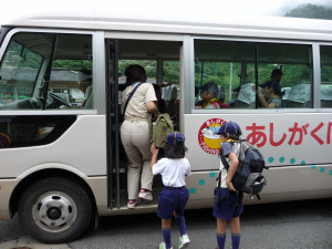 ここからバスに乗って、あしがくぼ渓谷国際釣場に行きます〜!