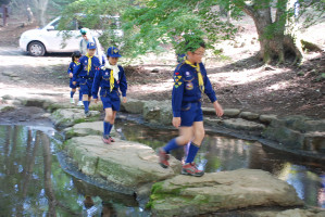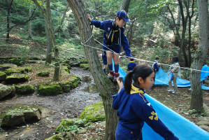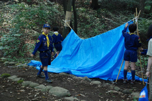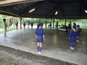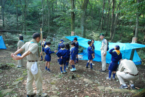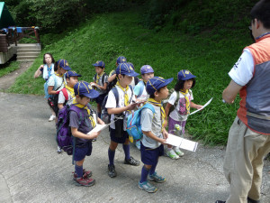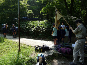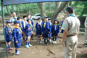 基地の片付けも終わり、朝礼をしたあとは、 くまスカウトをボーイ隊の体験キャンプに送り出しです。 行ってきま〜す!!! ガンバれ〜!!! よろしくお願いします