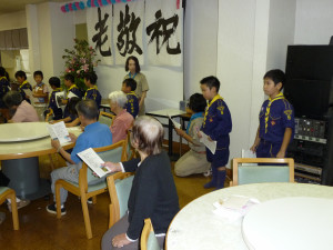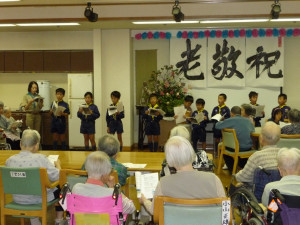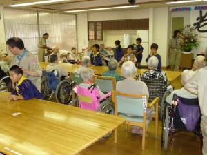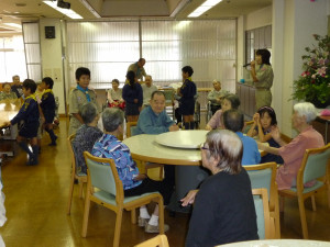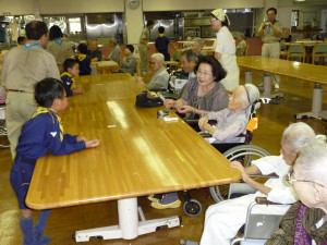 老人ホームで楽しいときを過ごします。