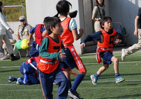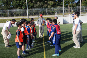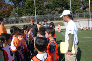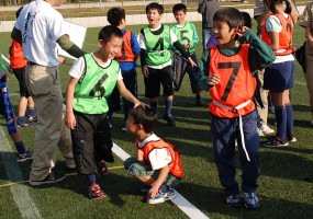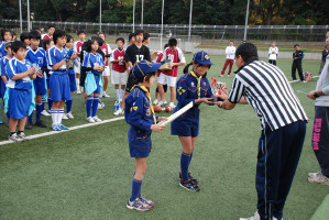 試合の後は、お互いの健闘をたたえて握手と礼! 閉会式