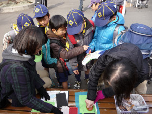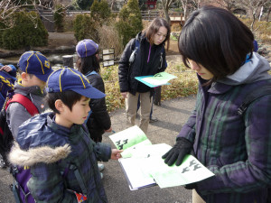 午前中は東園で、動物観察クイズにチャレンジします! 正解だと観察カードにスタンプを押してもらえます。 じっくり観察して・・・ 全員が、みごと全問正解!!
