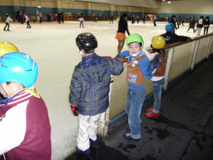 午前10:00 いよいよスケート訓練の始まりです! 準備もばっちり!いよいよリンクへ