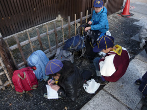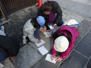 地図を見ながら菓子屋横丁に行き、買い物練習をします。
