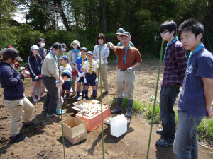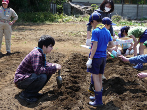 内容:ベンチャー隊の指導のもと、 ビーバー隊とカブ隊で種芋や豆などの植え付けです。 みんなで協力してすべて植え終わりました!