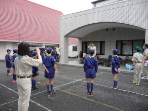 AM6:00 いよいよ、教会で、カブ隊とボーイ隊で出発のセレモニーです。