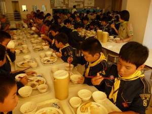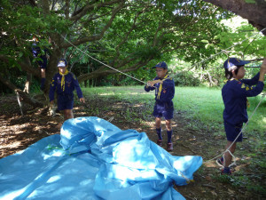 朝食のあとは、みんなで協力して、基地の片付けです。
