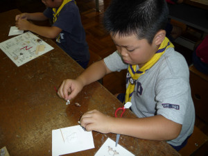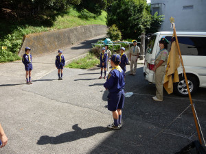 くまスカウトをボーイ隊の体験キャンプに送り出しです。