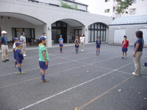基地の片付けも終わり、朝礼をしたあとは、