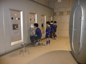 防災館では、地震・消火・煙・暴風雨などの防災体験の勉強をします。
